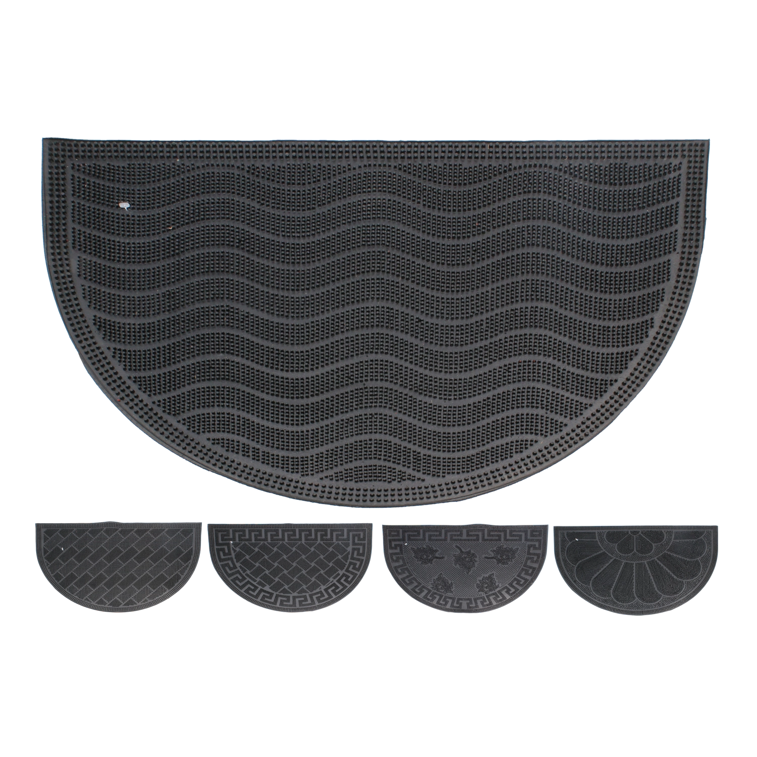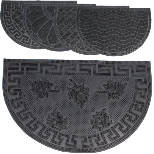 This half-round rubber doormat is designed for reliable use at the entrances of houses, apartments, offices, and commercial spaces. Thanks to its compact 40 × 60 cm size, it fits most doors, and the half-round shape elegantly follows the entrance zone. The 100% natural rubber ensures high durability, long lifespan, and effective dirt capture.
