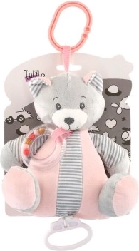Our wind-up plush teddy bear is designed to provide warmth and comfort to children. The music box inside the bear plays a gentle melody ideal for lulling to sleep. The plush material is soft and gentle on baby skin. The toy is equipped with a rattle located at the neck, which makes sounds when moved that stimulate the child's auditory perception. Thanks to the practical clip, the teddy bear can be easily attached to a crib, stroller, or car seat, making it ideal for both home and travel use.