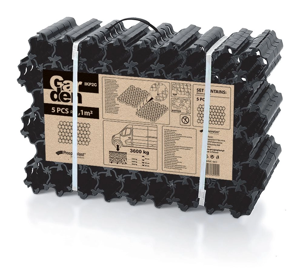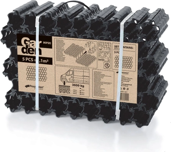 Highly durable plastic with a maximum load capacity of 3600 kg ensures long service life even under regular passenger car use. Thanks to the easy interlocking system, the panels connect quickly without special tools. A practical pack of 5 pieces covers 1.1 m², making it easy to calculate materials for both small and large projects.