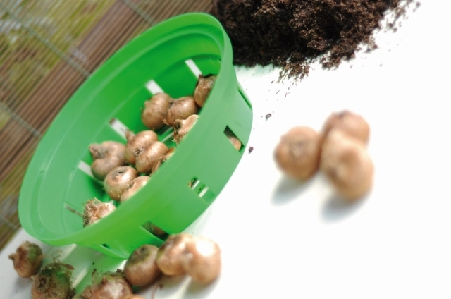 Keeps bulbs together, prevents uncontrolled spreading, and protects them from voles and moles.