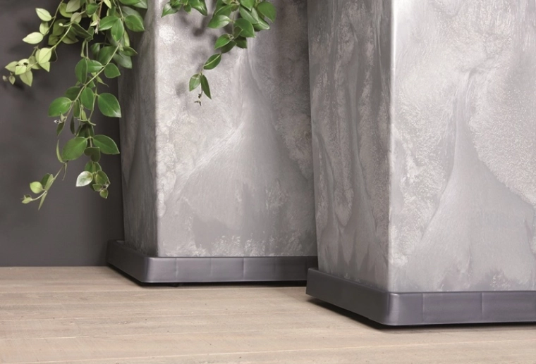 This square mobile stand measuring 29.2 × 29.2 cm is ideal for both interiors and exteriors. It allows easy repositioning of plants for optimal light or during cleaning while minimizing the risk of floor scratches. The modern anthracite finish suits various décor styles.