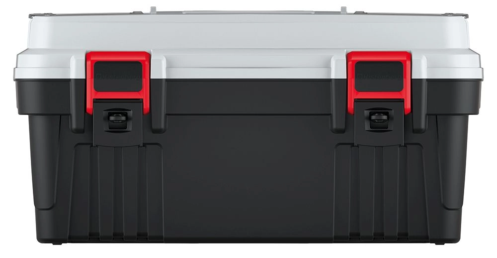 Strong locking latches and durable plastic protect the contents during transport, even in demanding workshop or construction conditions.