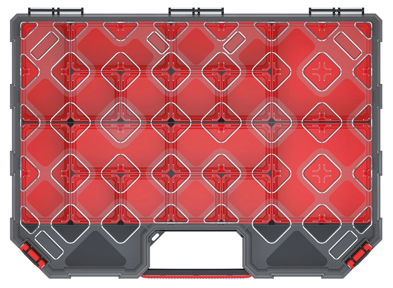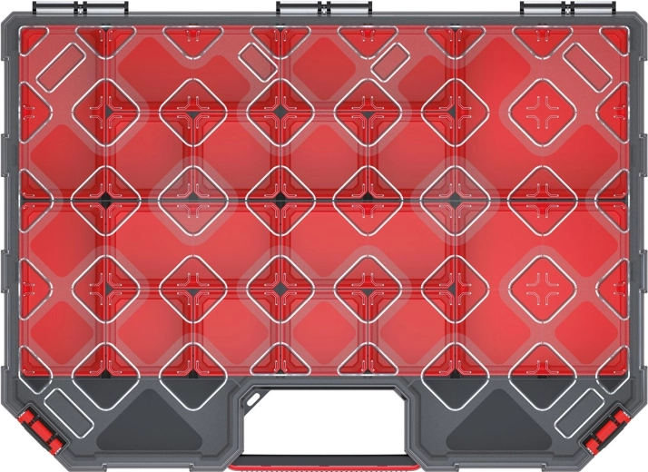 The tall TAGER CARBO PLUS organizer is an ideal choice for the workshop, garage, and home. Thanks to the polycarbonate lid, the contents are always visible, while the robust body protects stored items from damage. The 390 × 284 × 105 mm size offers generous space for various types of accessories.