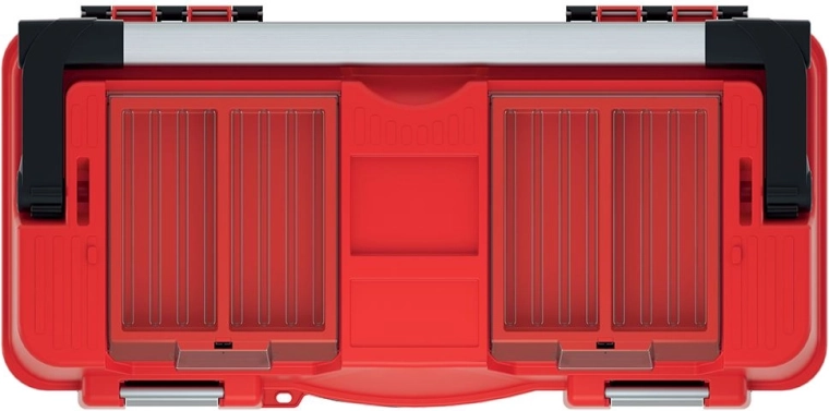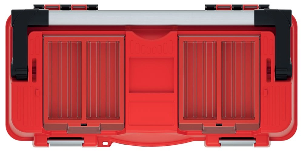 Smart internal organization saves time and space: the removable tray is ideal for frequently used tools, while the two transparent organizers in the lid hold screws, nails, and small parts. The metal handle provides a comfortable and secure grip, and the pair of aluminum latches reliably protects the contents during transport.