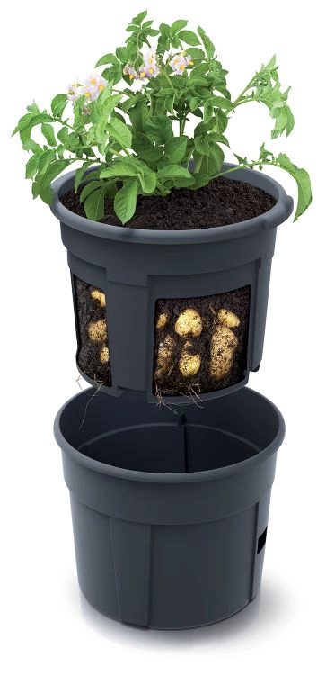 A practical planter for easy potato growing on a balcony or terrace. Thanks to the outer pot and the removable insert with holes, it offers simple growth monitoring, easy harvesting without removing the entire plant, and efficient watering. Lightweight, durable, and ideal even for beginner gardeners.