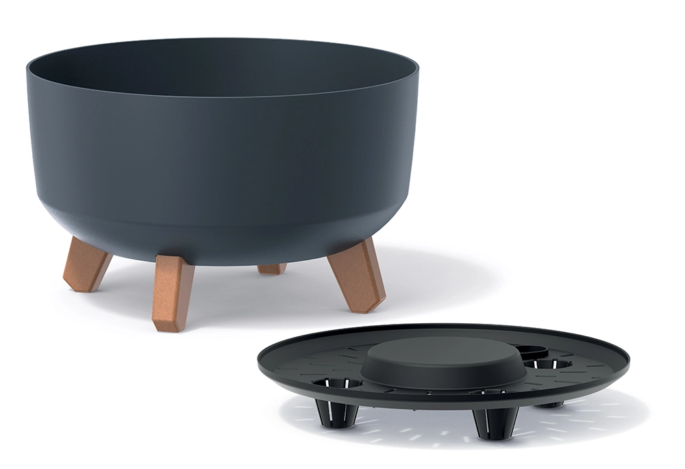 Gracia Low is a designer planter that combines a minimalist matte-anthracite bowl with short legs in a wood-look finish. Thanks to the elevated base, it feels light, allows better airflow, and provides plants with a stable setting. The durable plastic withstands everyday use, is low-maintenance, and remains lightweight for easy repositioning according to light conditions.