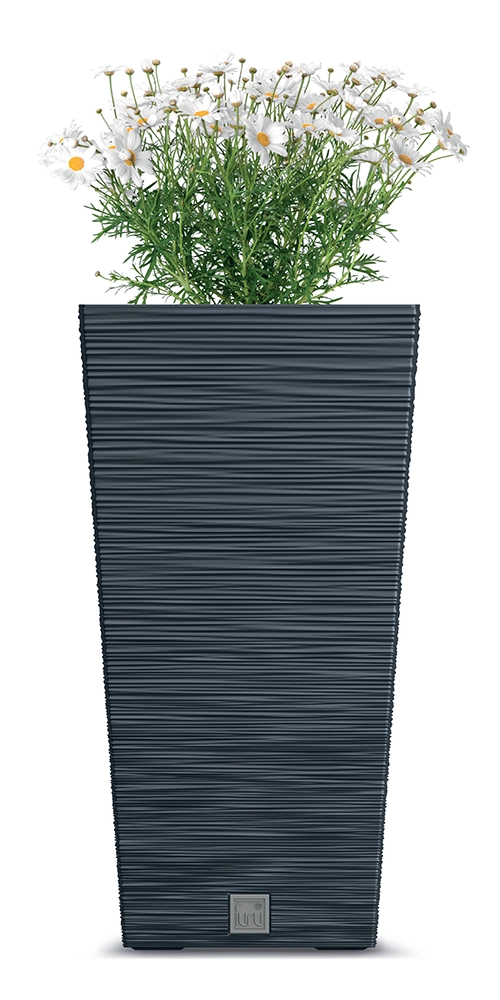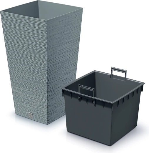 The stylish Furu Square planter in concrete gray gives your home or terrace a modern character. Thanks to its tall, tapering shape and pronounced ribbed structure, it looks elegant while being highly practical. It comes with an inner insert with handles, making planting, maintenance, and any repotting easier.