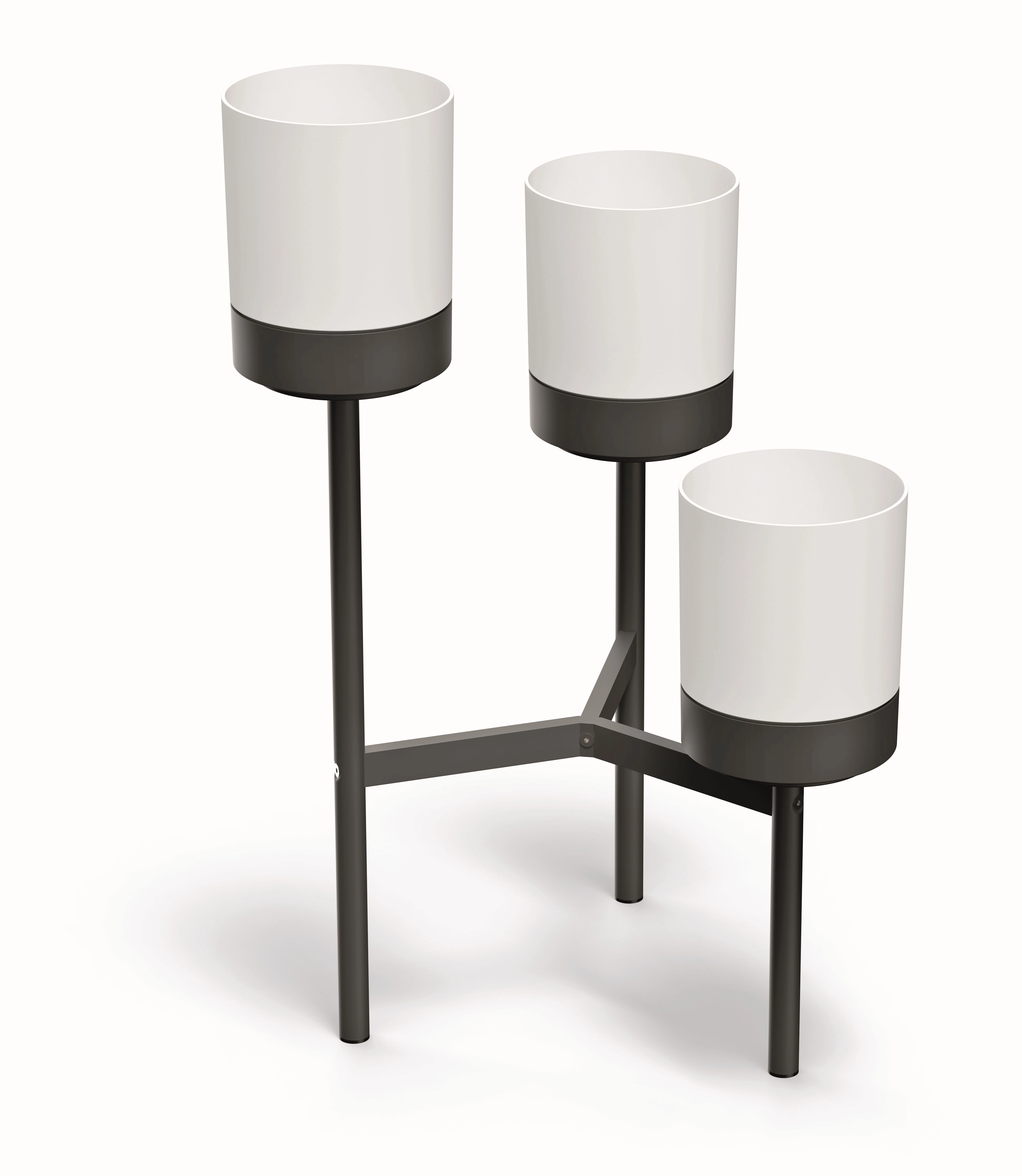 The Bloomie Stand designer plant stand combines a modern metal frame with durable plastic planters. The staggered levels accentuate each plant’s silhouette, improve light access, and create an impressive green composition in any interior.