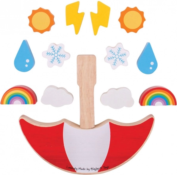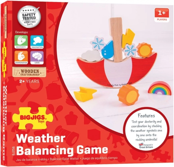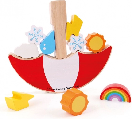 How high can you balance the weather pieces? This catchy balancing game combines fun and learning: kids develop coordination and logical thinking while stacking differently shaped and weighted pieces on the rocking umbrella. Every move requires focus and a gentle touch — the last successful player wins!