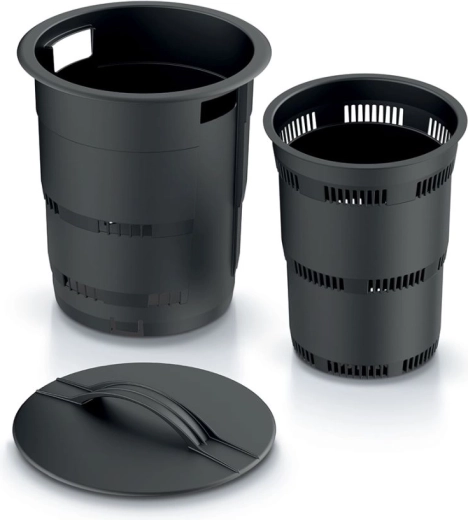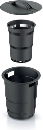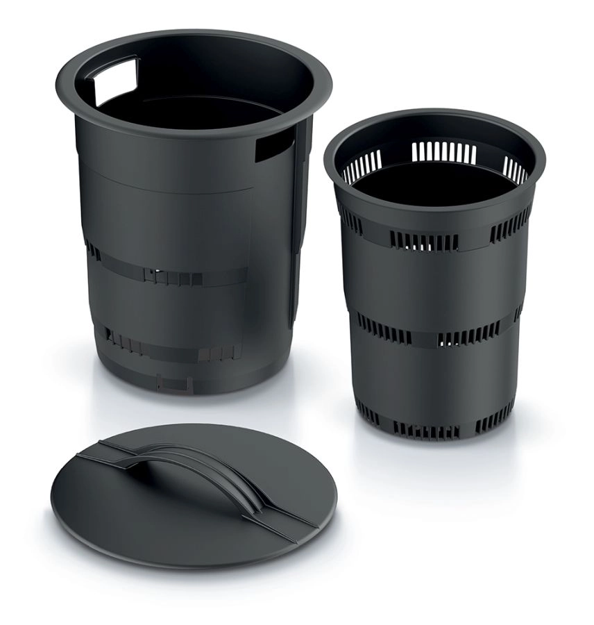Thanks to its compact 25 cm height and removable lid, handling and refilling are easy. The robust plastic resists moisture and weather, enabling year-round use without issues. Suitable for vegetable and fruit peels, coffee grounds, small plant waste, and crushed eggshells.