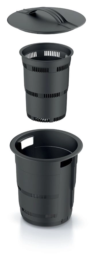Perforated walls allow airflow and the entry of earthworms, which speeds up the breakdown of bio-waste and naturally nourishes surrounding plants.