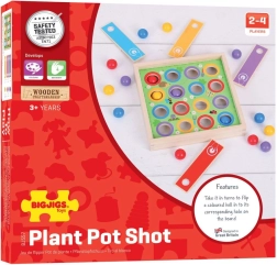 A fun family game for children from 3 years that develops fine motor skills, reflexes, and hand–eye coordination. The goal is to use the launchers to flip the colored balls into the matching holes on the board. A game for 2–4 players in red, blue, yellow, and purple. Made from responsibly sourced wood and meets European safety standards.