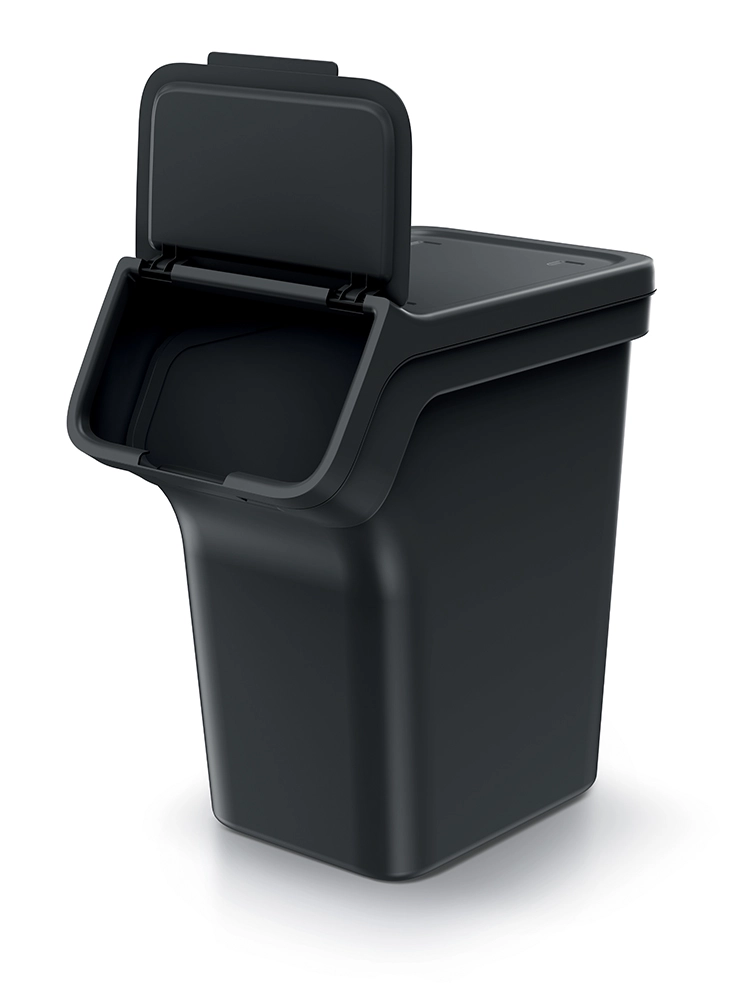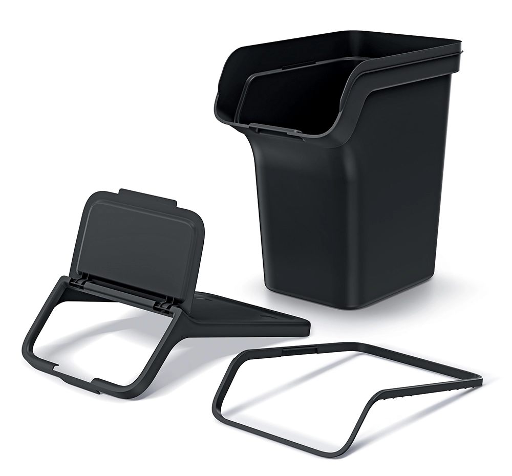 The bins can be easily stacked while maintaining full access to the opening thanks to the protruding front section with a flip-up lid. Ideal for smaller kitchens and offices.
