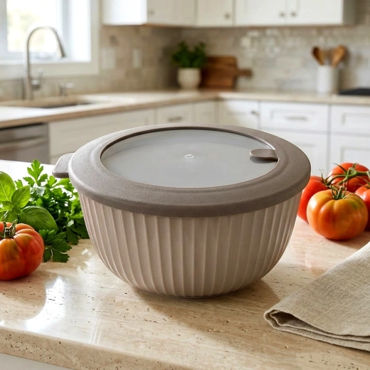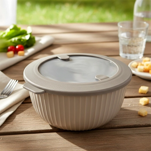 A practical 1 l kitchen bowl with a sealing lid, ideal for storage, microwave heating, mixing and serving. It has a transparent window to check the contents, a steam vent, and a BPA-free design with reliable sealing. Withstands temperatures from -25 °C to +95 °C and is dishwasher safe.