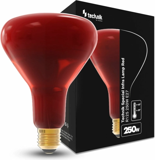 The Modee Technic infrared bulb provides intense radiant heat for workshops, animal rearing, wellness, or therapeutic facilities. Thanks to the E27 base, it can be easily installed into compatible sockets, and the R125 shape directs heat precisely where it is needed. The dimmable function allows you to adjust the output to current requirements.