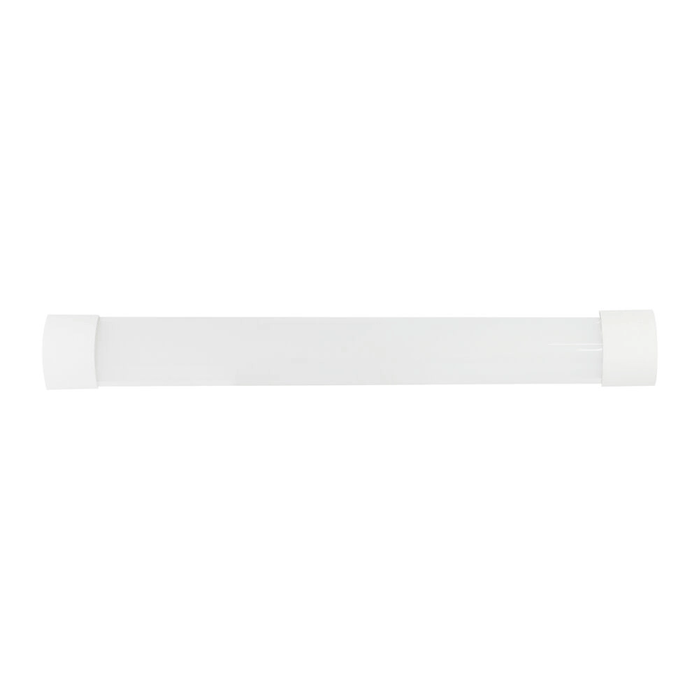 Thanks to its wide 120° beam angle, the luminaire ensures even light distribution. The built-in power supply simplifies installation—no tube or ballast is required. The compact dimensions of 600 × 76 × 24 mm make it suitable for corridors, utility rooms, small workshops, changing rooms, and storage areas.