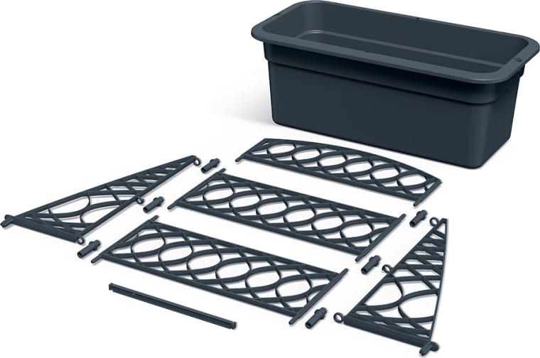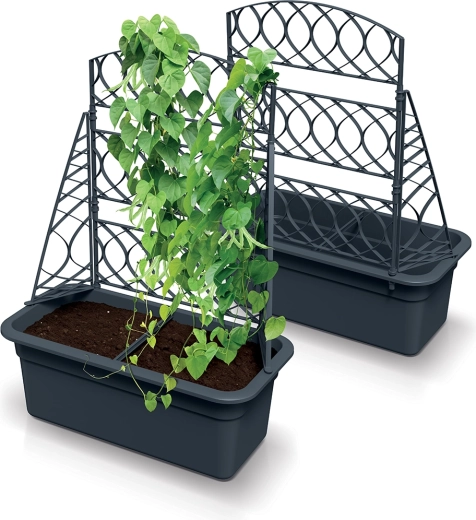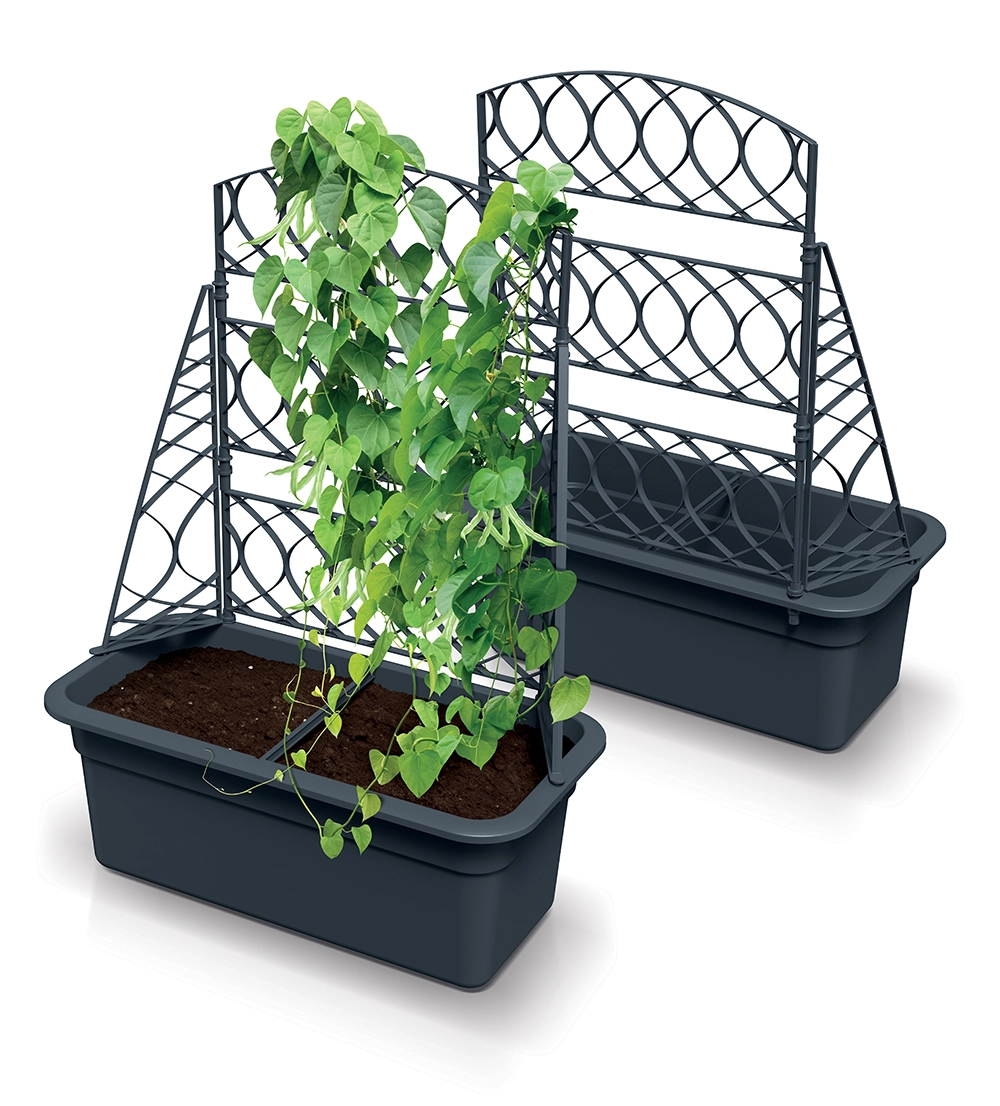 The rectangular planter with trellis saves space and elegantly complements modern exteriors. Ideal for vertical gardening.