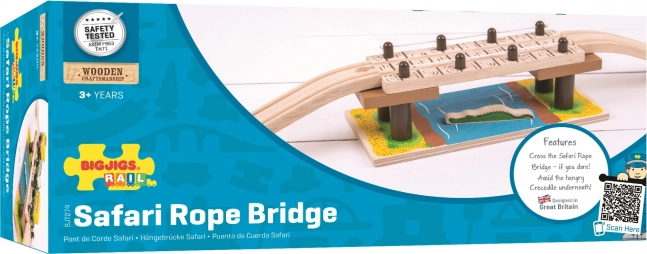Treat kids to a thrilling safari adventure. The robust rope bridge with river print and a removable crocodile adds a captivating element to any wooden railway, sparking imagination and developing fine motor skills and coordination.