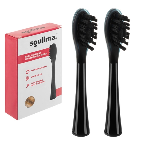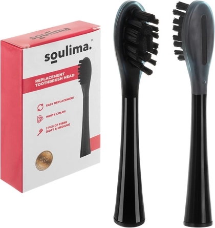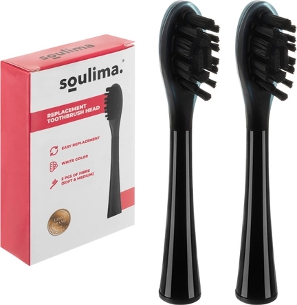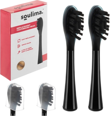 Replacement heads for SOULIMA X800 sonic toothbrush, black, soft + medium, 2 pcs