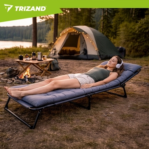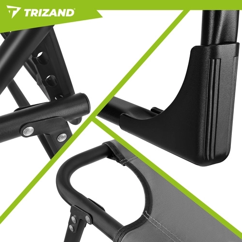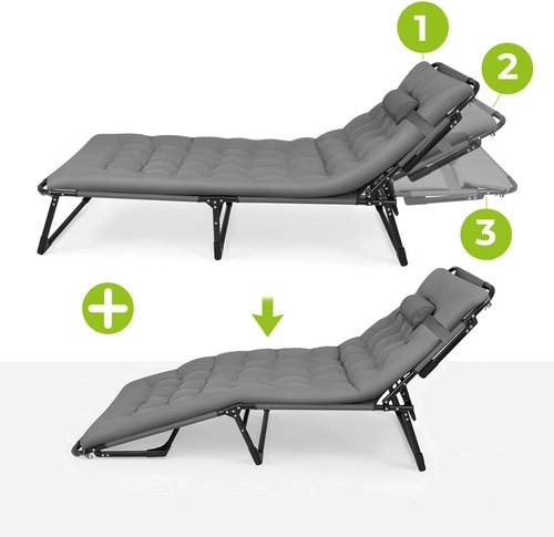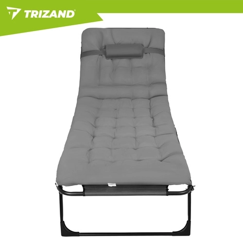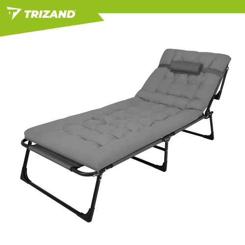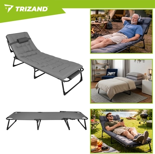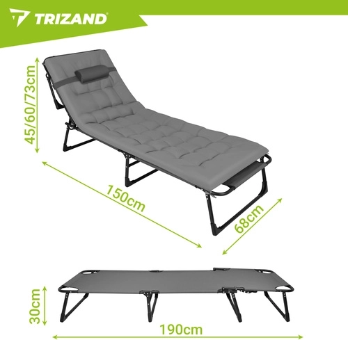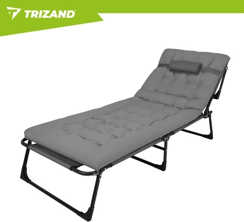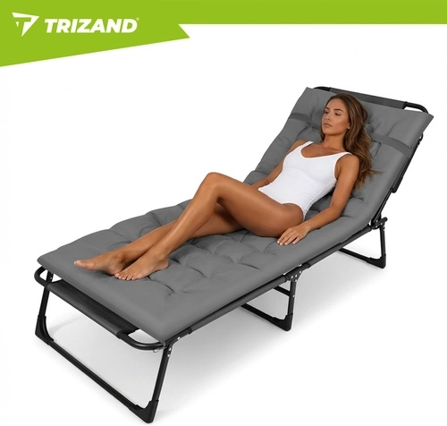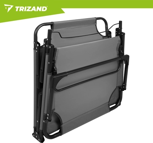 The practical folding TRIZAND lounger combines the comfort of a sunbed with the functionality of a camp bed. The adjustable backrest with 4 levels and the adjustable footrest let you find the ideal position for reading, sunbathing, or an afternoon nap. A thickly padded mattress with a headrest provides soft support along the entire body.