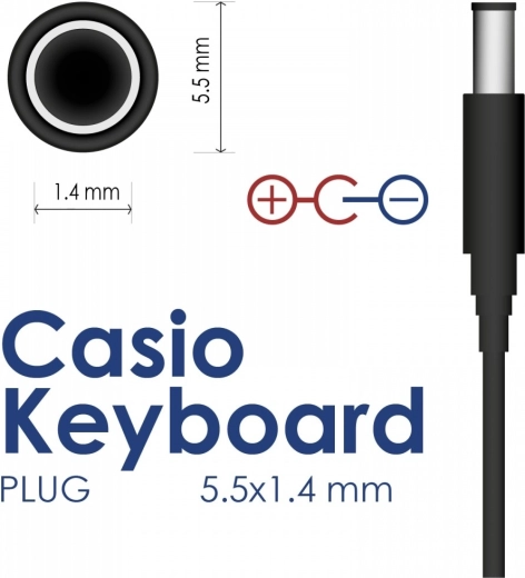 Looking for a reliable power source for your CASIO keyboards? This quality adapter with 9 V / 1 A (9 W) delivers stable current and protects your instrument during everyday practice and live shows. Thanks to the universal 5.5 × 1.4 mm DC connector, it’s a great fit for a wide range of older CASIO keyboard models.