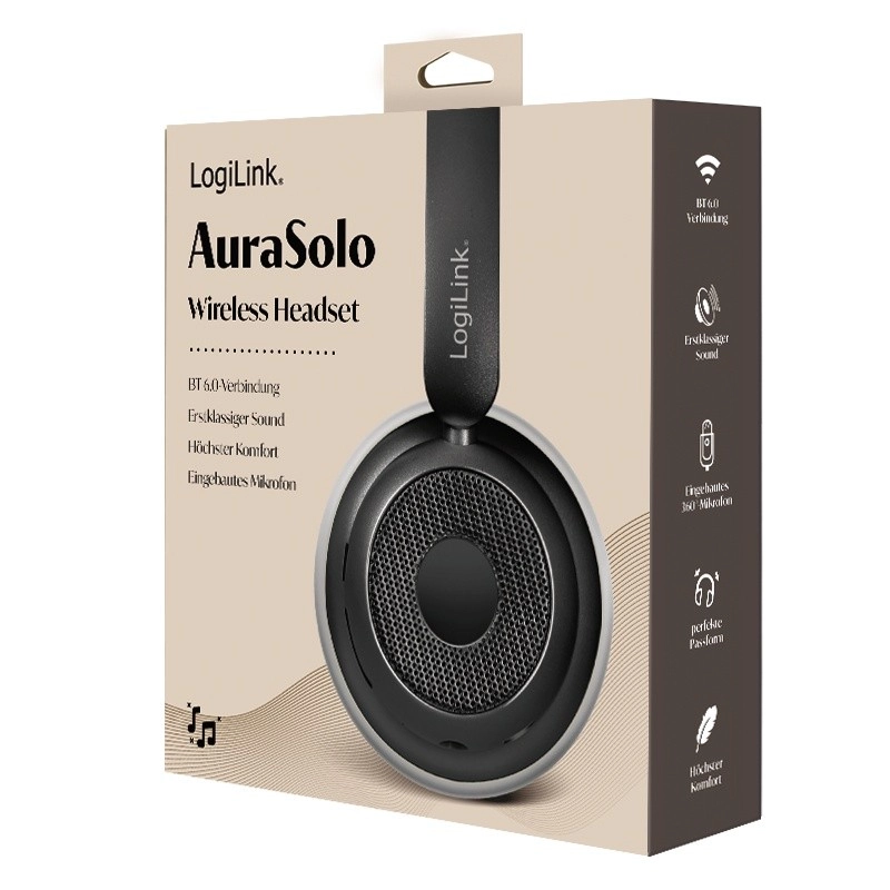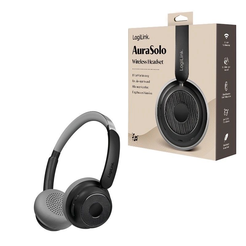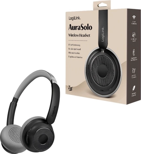 Enjoy listening freedom with the LogiLink AuraSolo wireless headphonesBluetooth 6.0, active noise cancellation (ANC), comfortable wear, and up to 20 hours of battery life. The built-in microphone ensures clear calls, multifunction buttons make control easy, and there is also a 3.5 mm audio jack for wired listening.