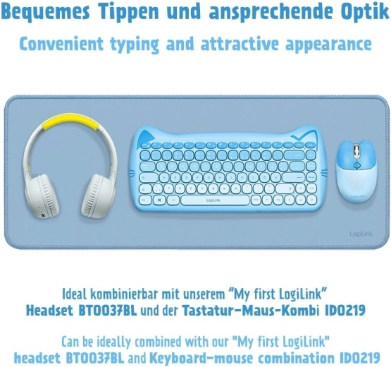 This extra-large keyboard and mouse pad in elegant blue brings order and comfort to any desk. With 70 × 30 cm dimensions, it accommodates your keyboard, mouse, and headphones while protecting the desktop from scratches.