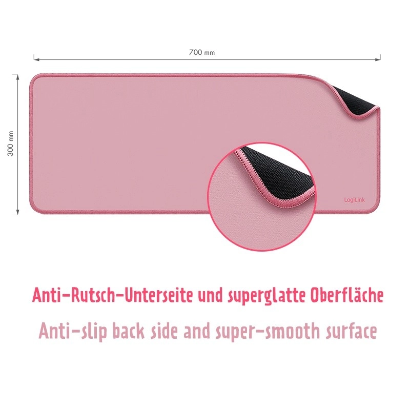 Designed for daily use: the non-slip base stays firmly in place, while the flat, stitched edges boost durability and prevent fraying. The stylish pink adds a distinctive look to any desk—whether in a home office, kids’ room, or gaming setup.