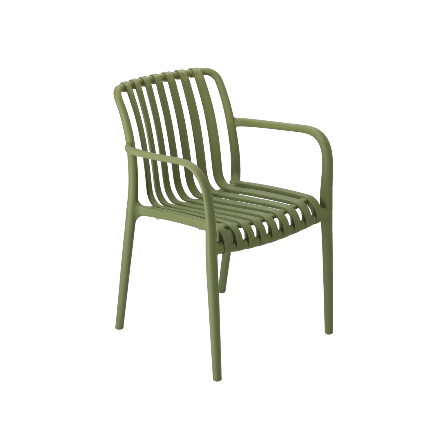 This green garden chair is a great choice for outdoor seating. Thanks to the UV filter, it maintains its color and look over time, is resistant to rain and sun, and handles everyday use. The lightweight construction makes handling and storage easy.