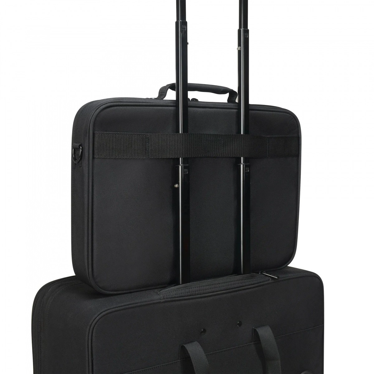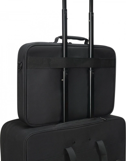 • Comfortable carrying with sturdy handles, a shoulder strap, and a luggage pass-through strap.
