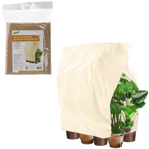 A practical protective cover made of agricultural fleece with a weight of 80 g/m² reliably protects delicate plants from frost, wind, and drying out. Thanks to the integrated drawstring hem, it fits securely at ground level and prevents drafts from getting underneath. Suitable for repeated use, in beige and size 2 × 2.4 m.