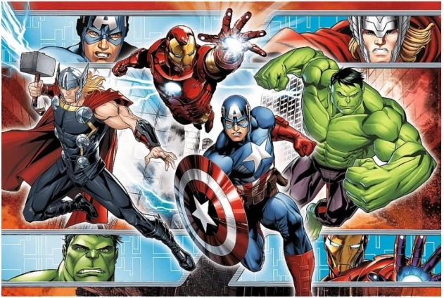 The puzzle features favorite Avengers characters like Thor, Iron Man, Captain America, and Hulk.