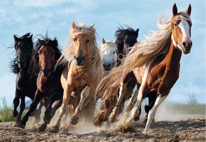 Treat yourself with a puzzle that, once assembled, captures the stunning scene of galloping horses. The dimensions of the final image are 68 x 48 cm, providing an ideal size for showcasing the details of this dynamic scene.