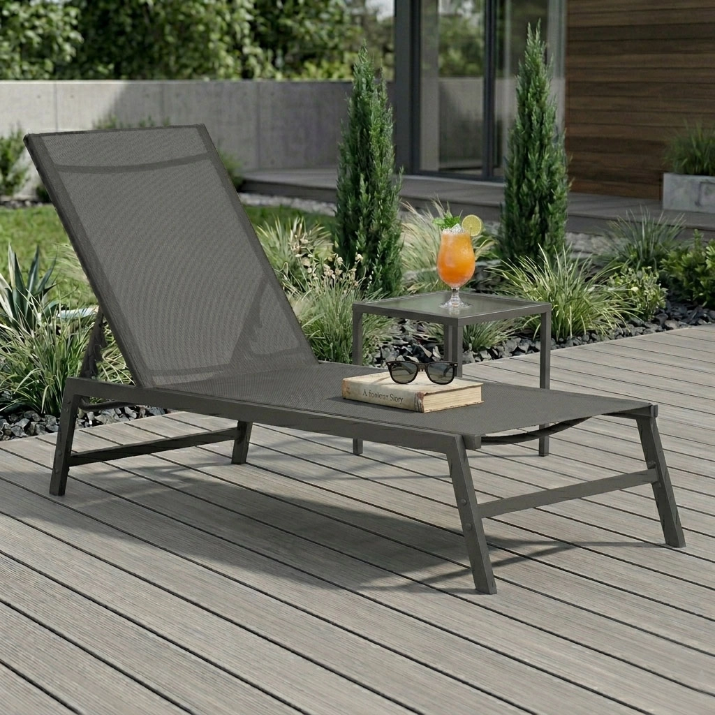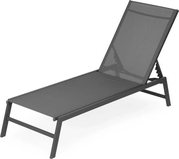 Enjoy comfort and style while relaxing in the garden, on the terrace, or by the pool. This grey lounger combines a minimalist design with long service life and easy maintenance. The breathable mesh dries quickly and adapts to the body, while the powder-coated steel frame ensures weather resistance.