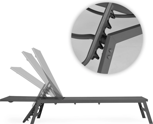 A simple mechanism lets you choose the ideal position — from comfortable sitting to fully flat for sunbathing and full-body relaxation.