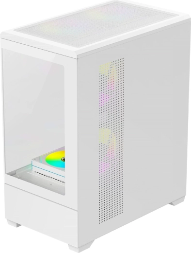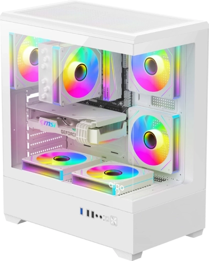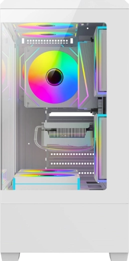 The stylish DarkFlash C365 case in white combines a 270° panoramic view without corner posts with compact dimensions and great expandability. It offers tempered glass on two sides, up to 7 fan positions, support for E-ATX/ATX/M-ATX/ITX motherboards, and space for a GPU up to 330 mm and a CPU cooler up to 170 mm. The package includes 5 fans for efficient cooling and an attractive showcase of your components.