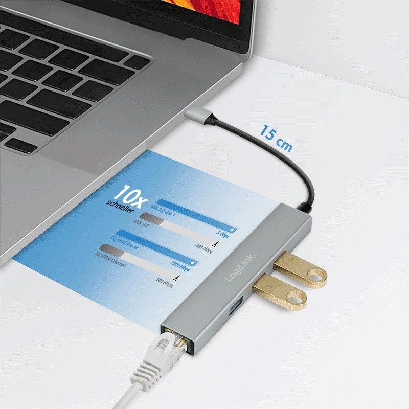 Expand your notebook, tablet, or phone with USB‑C with a fast wired Gigabit Ethernet connection and 3 additional USB‑A ports. The LogiLink UA0461 offers stable data transfer, plug & play with no drivers required, and an ultra‑slim aluminum design with no need for external power—ideal for travel and the home office.