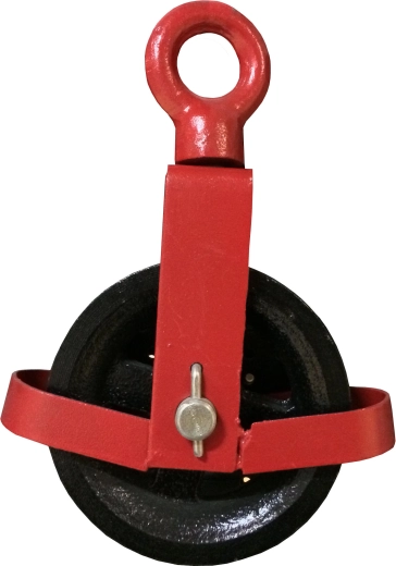 This mason’s pulley with eye is practical portable equipment for efficient handling of loads during construction and installation work. Thanks to its robust build and simple, open design without a cover, it ensures reliable operation and easy maintenance. It is optimized for use with hemp or polyamide rope up to 24 mm in diameter.