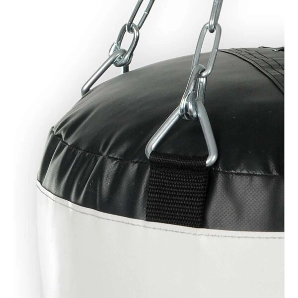 The top lace-up opening makes filling and servicing easier, and the double-reinforced bottom with additional straps increases overall longevity. The ideal ceiling height for hanging is approx. 215 cm. The chains have a length of 45 cm with standard suspension and can be easily shortened thanks to the carabiner.