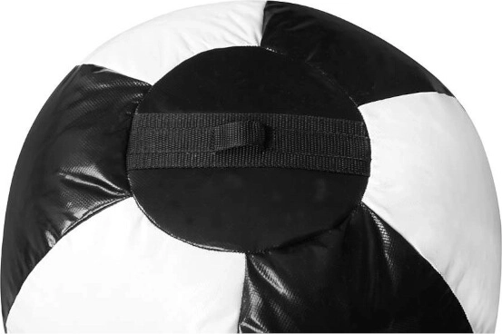 The mix of foam–rubber granulate is compressed to a medium firmness, excellently absorbs energy, resists “packing out,” and maintains uniform density over the entire surface for a consistent feel on impact. Three welded chains (load capacity up to 200 kg) converge at a swivel eye to prevent tangling. A bottom anchoring eye allows attaching a tension band with weight for increased stability.