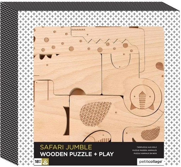 The Safari wooden animal puzzle by PETIT COLLAGE will delight children at every stage of development. Little explorers can place the pieces into the wooden frame or freely assemble and stack them—the play fosters not only motor skills and hand–eye coordination but also creativity and patience.