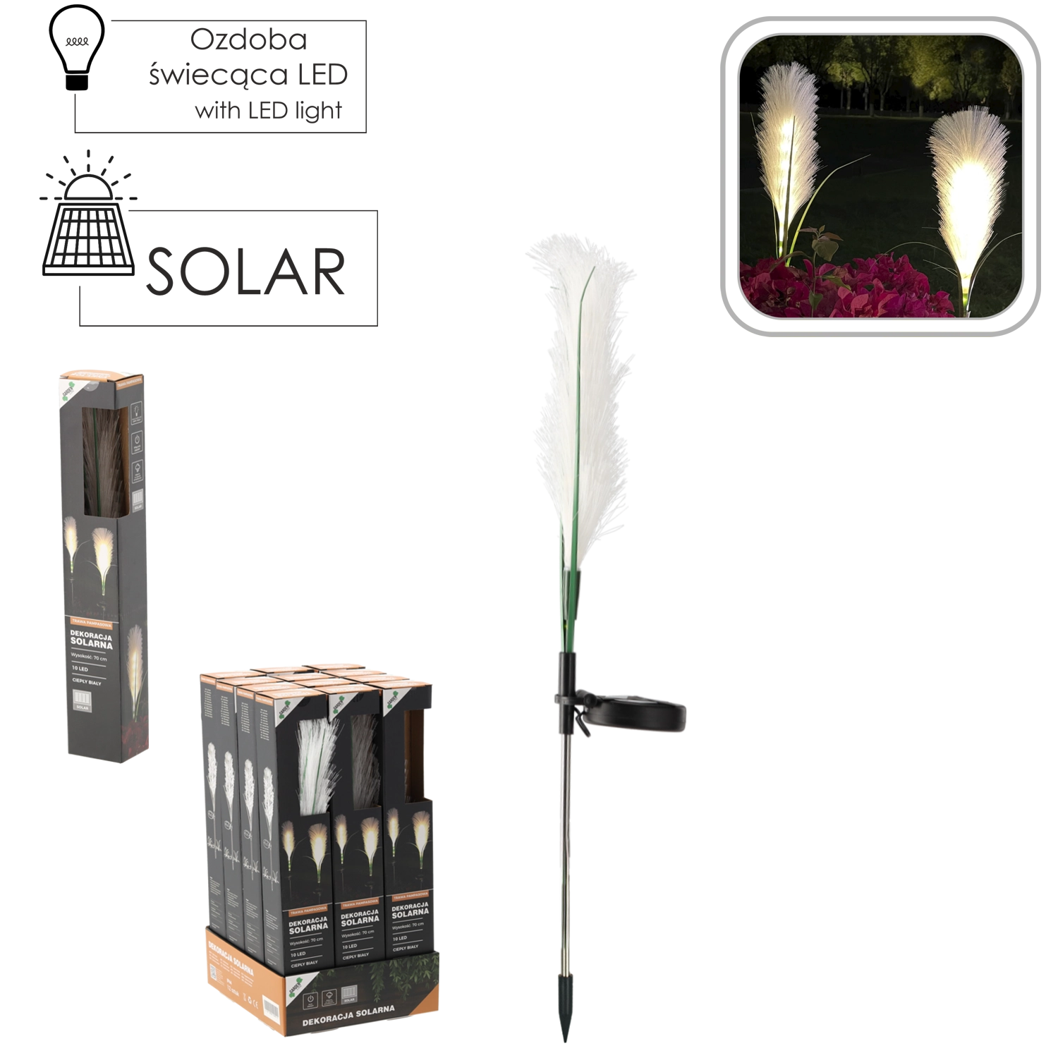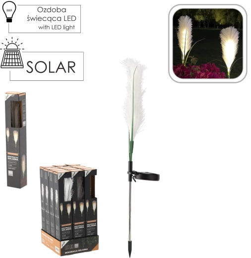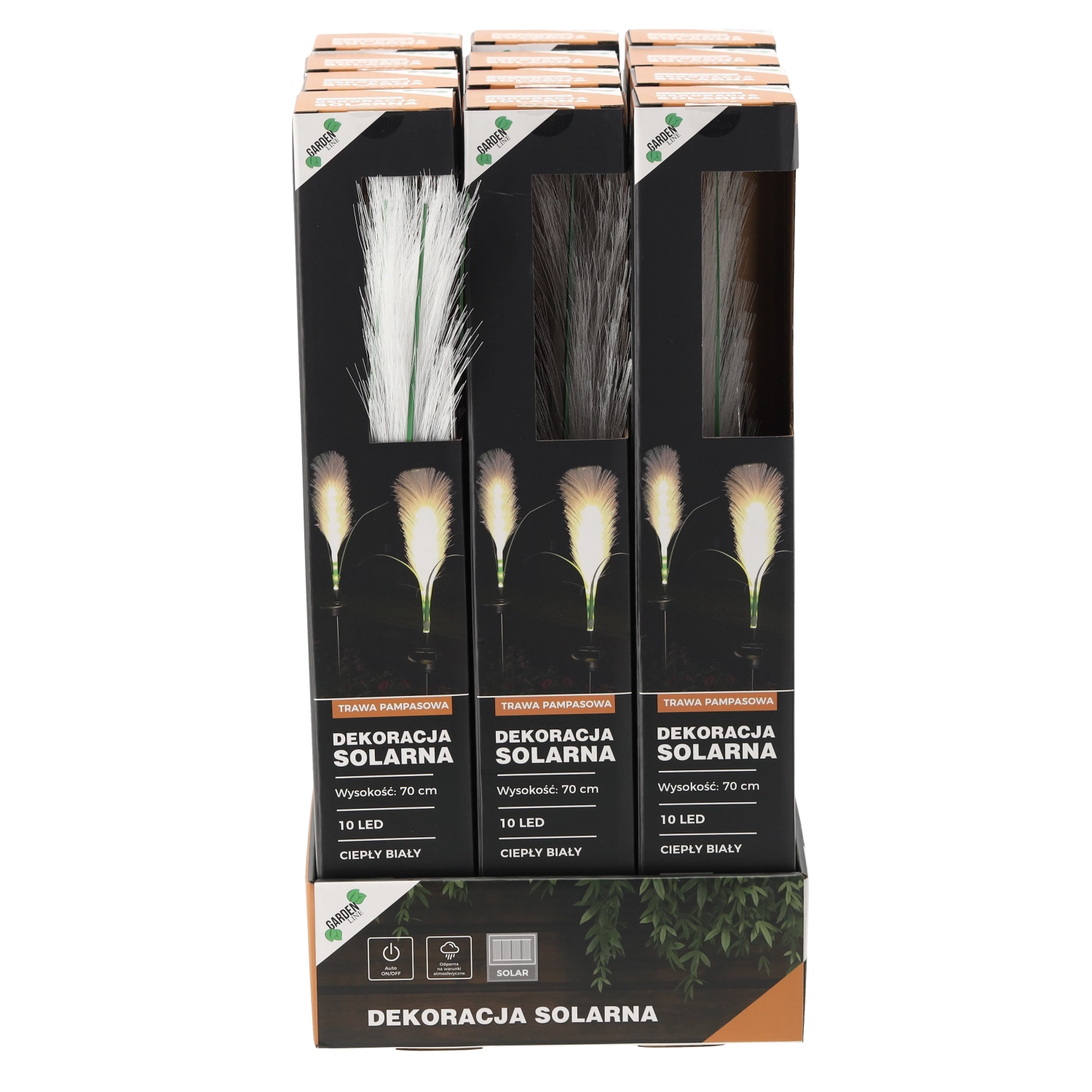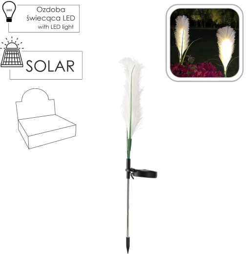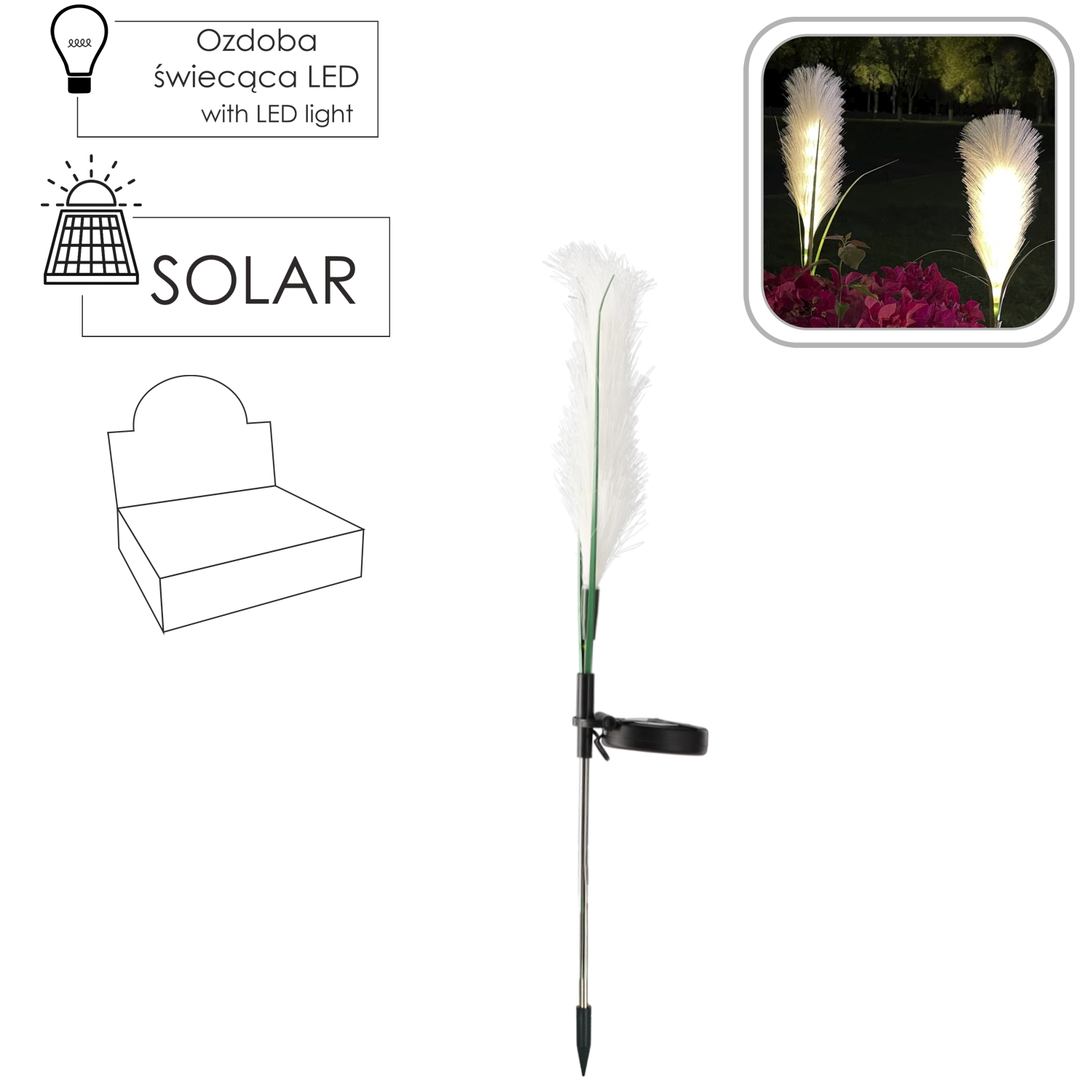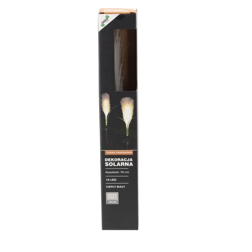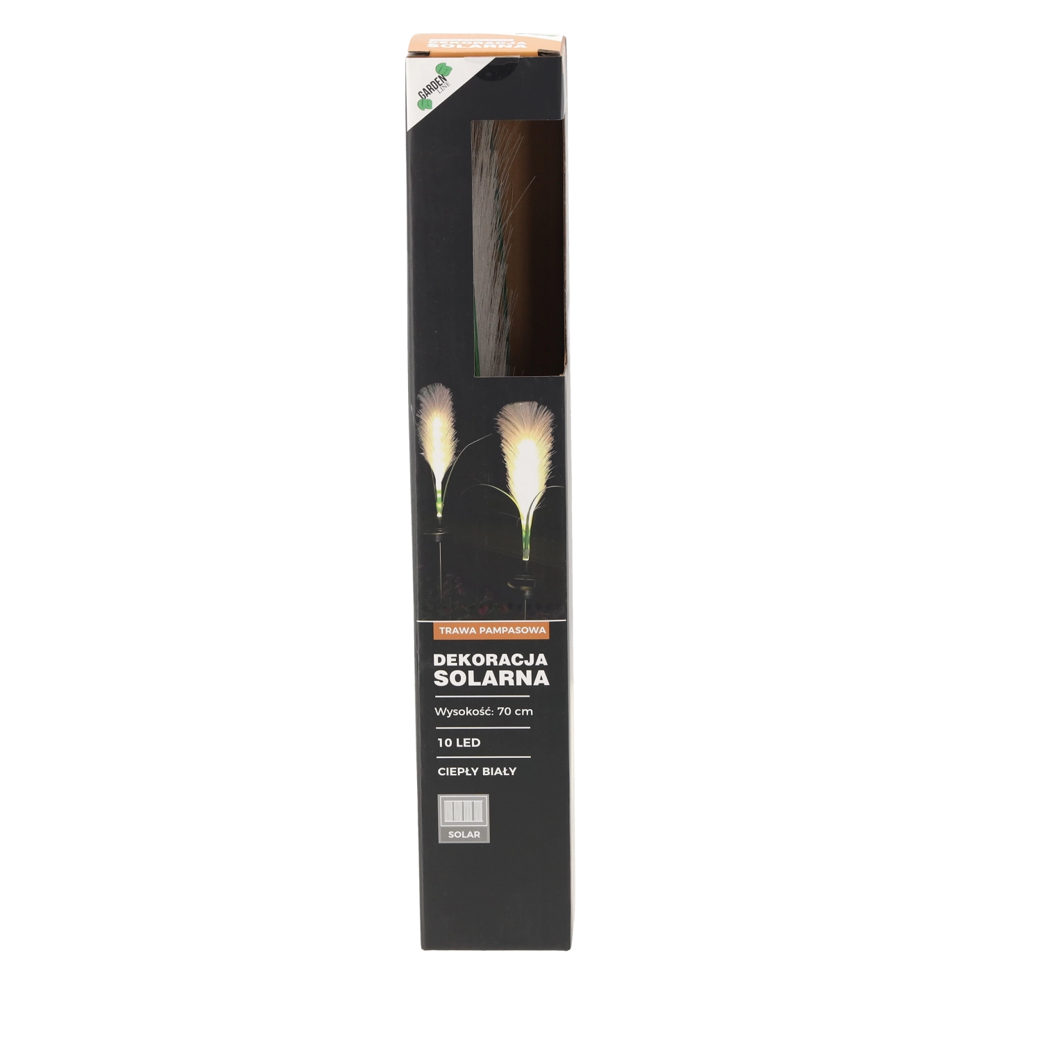 This stylish solar lamp imitating pampas grass is ideal for lighting paths, flower beds, and patios. The integrated amorphous solar panel charges the included battery during the day, and after dusk the light turns on automatically with a pleasant warm hue. The 70 cm height ensures the decoration stands out and adds a cozy ambience.