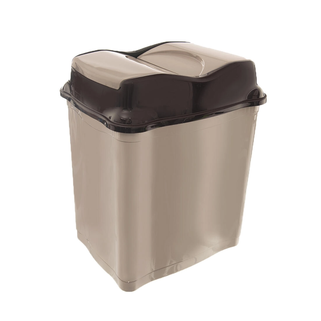 A practical 9 L swing-top bin with a rectangular shape and durable plastic construction is ideal for the kitchen, bathroom, and office. It features an original wave-shaped lid and a split center for easier disposal of larger waste. Available in a mix of neutral colors for easy coordination with your interior.