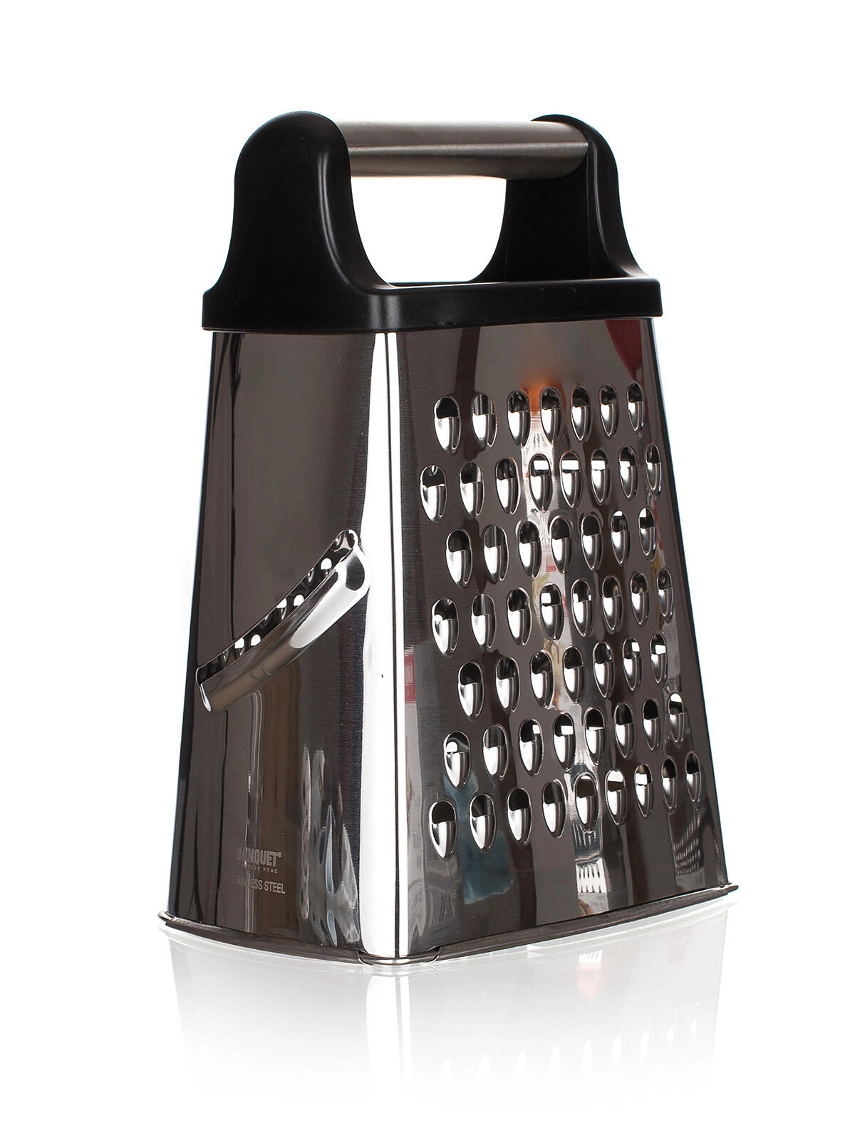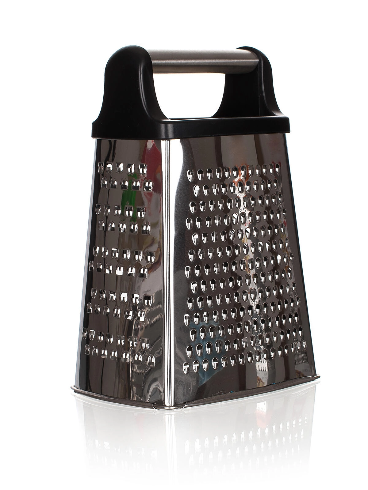 A practical four-sided A-shaped grater with a height of 21.5 cm for everyday slicing and grating. It offers various grating sizes for cheese, vegetables, and citrus zest, features a comfortable plastic handle, and a durable stainless steel body for easy cleaning and long life.