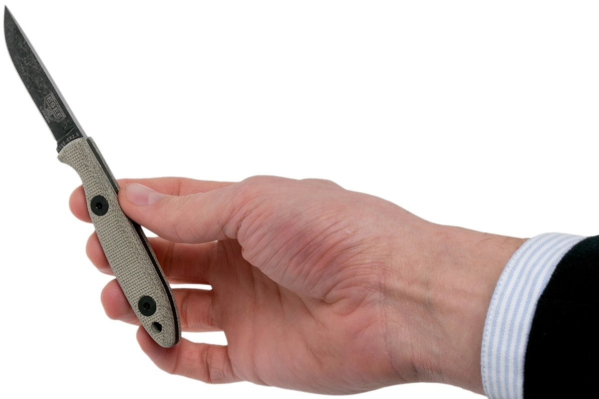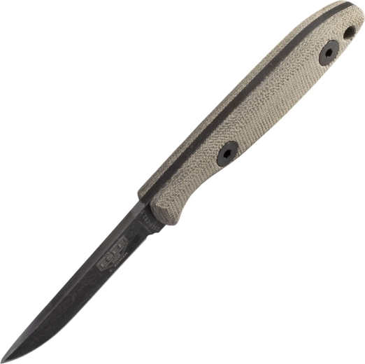 The ESEE CR 2.5 Camp-Lore, designed by Cody Rowen, is a small yet exceptionally capable knife for everyday tasks in the field. Thanks to its 1095 carbon steel blade with a protective finish, it cuts excellently, is easy to sharpen, and provides confidence when working with wood as well as food.
