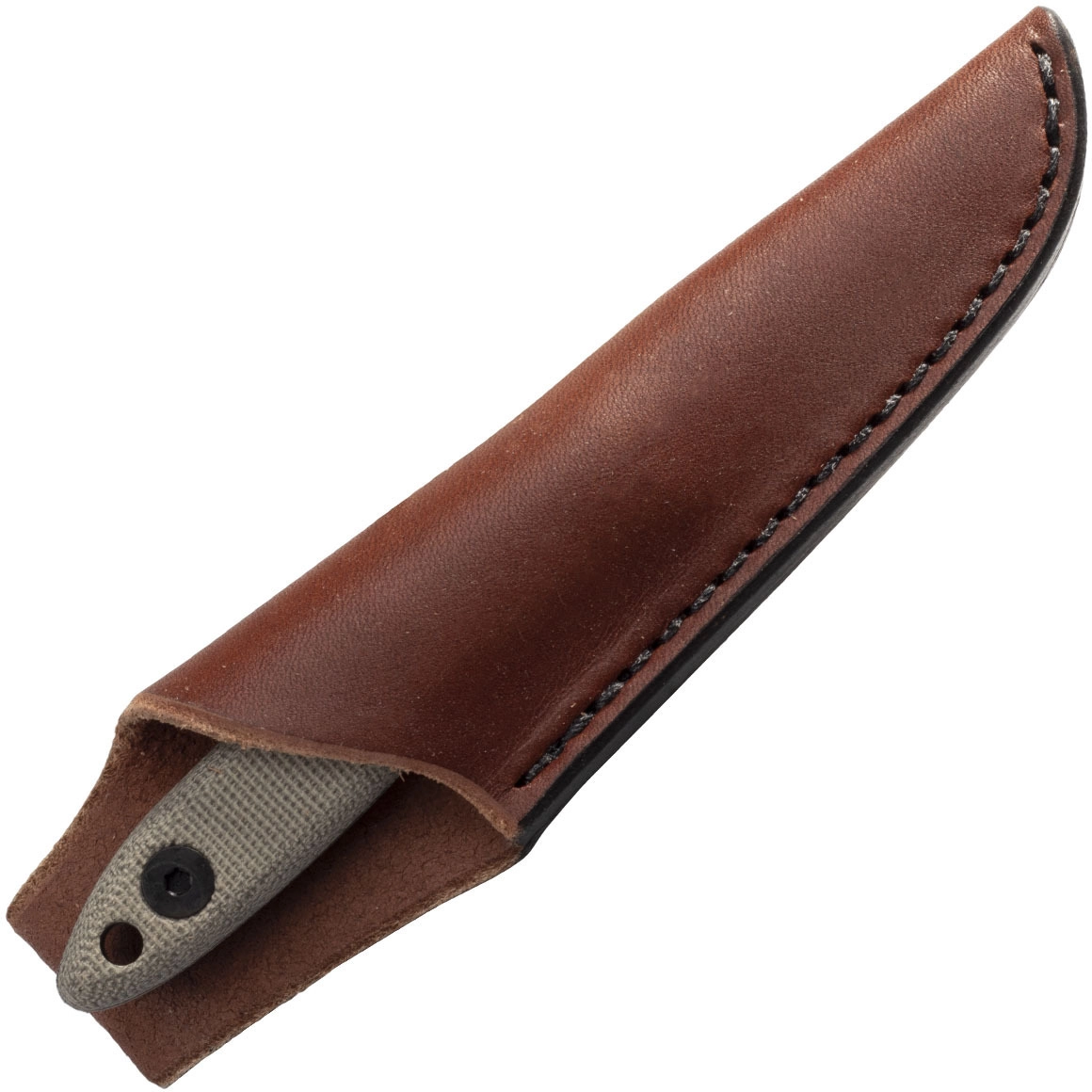 The textured micarta handle sits perfectly in the hand, doesn’t slip, and together with the full-tang construction increases durability and stability for slicing, carving, and fine tasks. The leather sheath enables comfortable and secure belt carry.