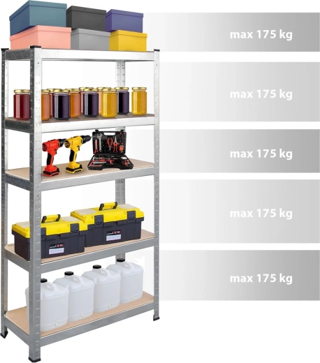 • Load capacity: up to 175 kg per shelf, 875 kg total (with evenly distributed load)