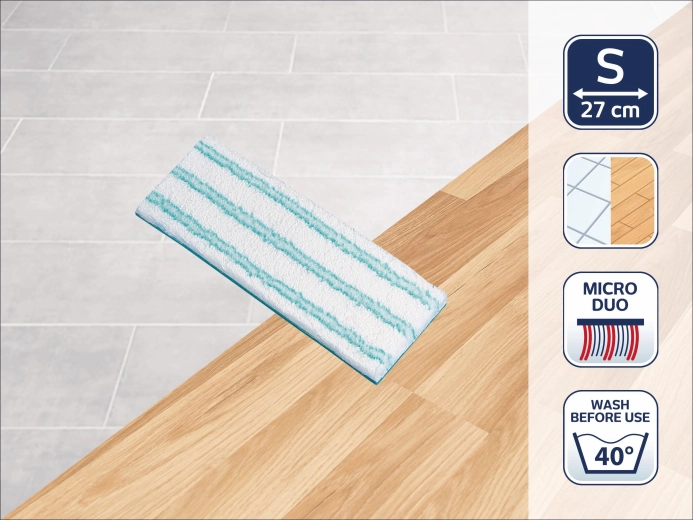With easy replacement and the option to machine-wash without fabric softener, it saves time and money. Ideal for laminate, parquet, cork, linoleum, and other hard floors. The high durability of the material guarantees a long service life and consistently high cleaning performance.