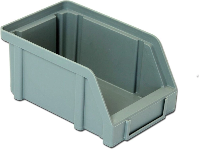 Keep screws, wall plugs, components, or office supplies organized and within reach. The slanted front ensures better access, while the sturdy plastic withstands daily use in workshops, garages, and industrial environments. With universal dimensions of 150 × 100 × 70 mm, the bin can be easily arranged in rows and on shelves.