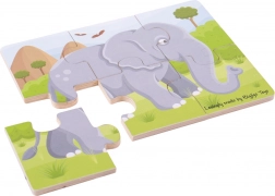 - 3 wooden puzzles (themes: lion, zebra, elephant)